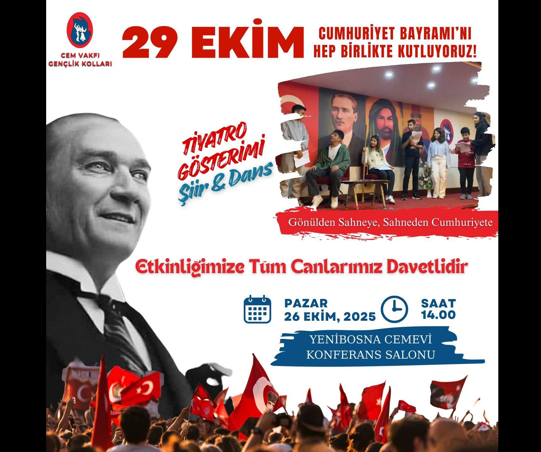 Etkinliğimizde tiyatro, şiir ve dans gösterileri ile Cumhuriyet coşkusunu doyasıya hissedeceğiz.