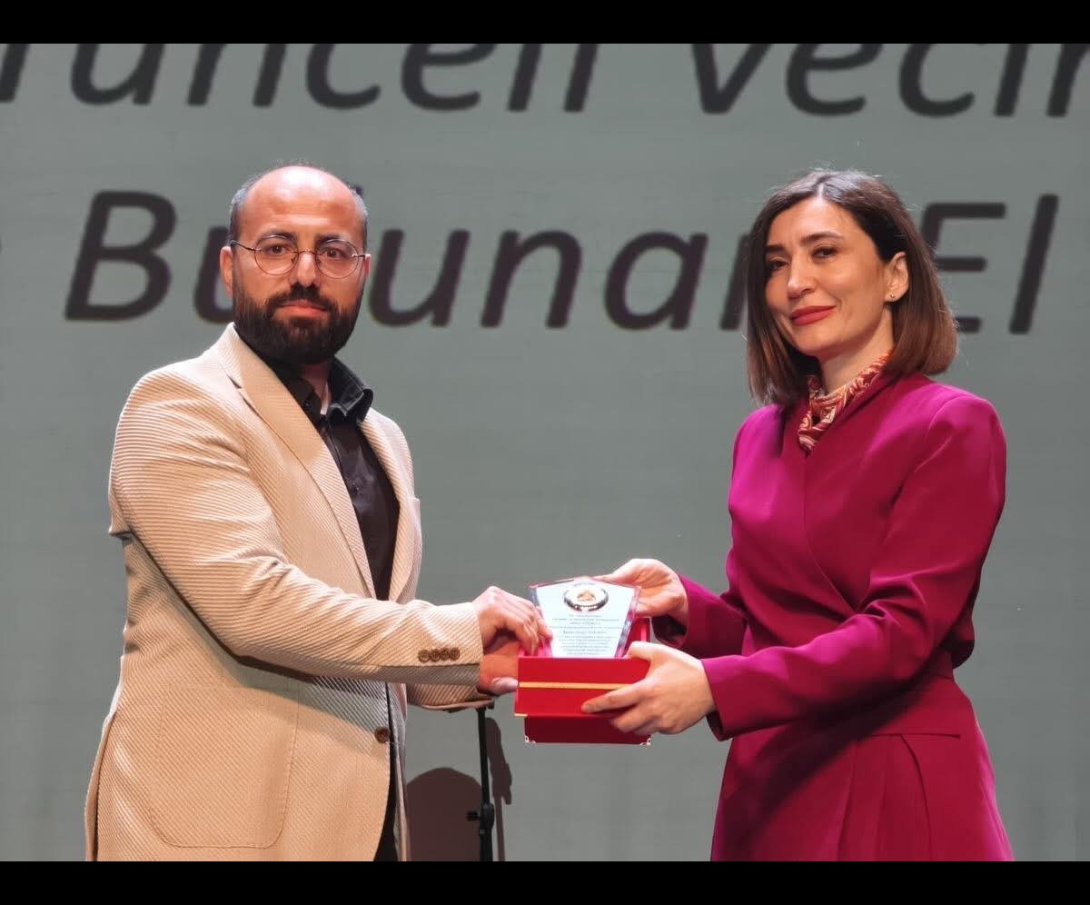 Tuna Taştekin, Yüksek Lisans alanında 2.lik ödülünü AKKAV Vakfı Başkanı Bektaş Avcı’dan aldı.