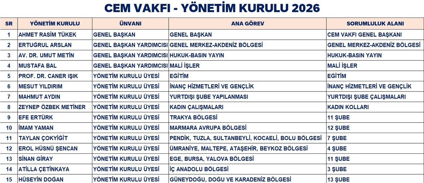 Yeni seçilen Yönetim Kurulu üyelerimize görevlerinde başarılar diliyor; üstlendikleri sorumluluğun Vakfımıza ve toplumumuza hayırlı olmasını temenni ediyoruz.